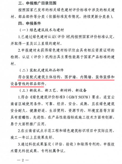 1、扎實(shí)推進(jìn)云南省綠色裝配式建筑高質(zhì)量發(fā)展,云南省具備綠色建材、裝配式建筑部品部件、建筑“四新”研發(fā)和生產(chǎn)能力的企業(yè)、科研院所、大專院校等法人單位即可申報(bào)。